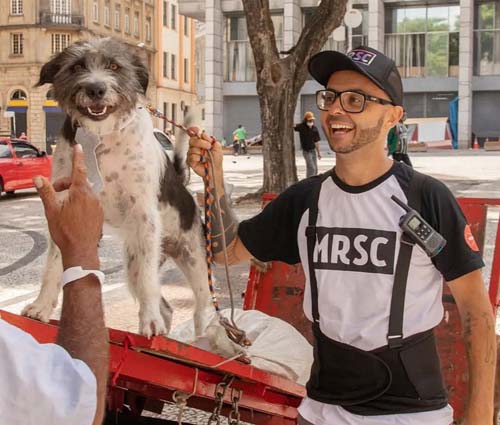 Eduardo Leporo e um dos milhares de pets atendidos: idealizador da ONG Moradores de Rua e Seus Cães (MRSC), que, por meio de suas ações, foi responsável no ano passado por 1.042 castrações em animais de rua e entregou 32 toneladas de alimentos em forma de cestas básicas.